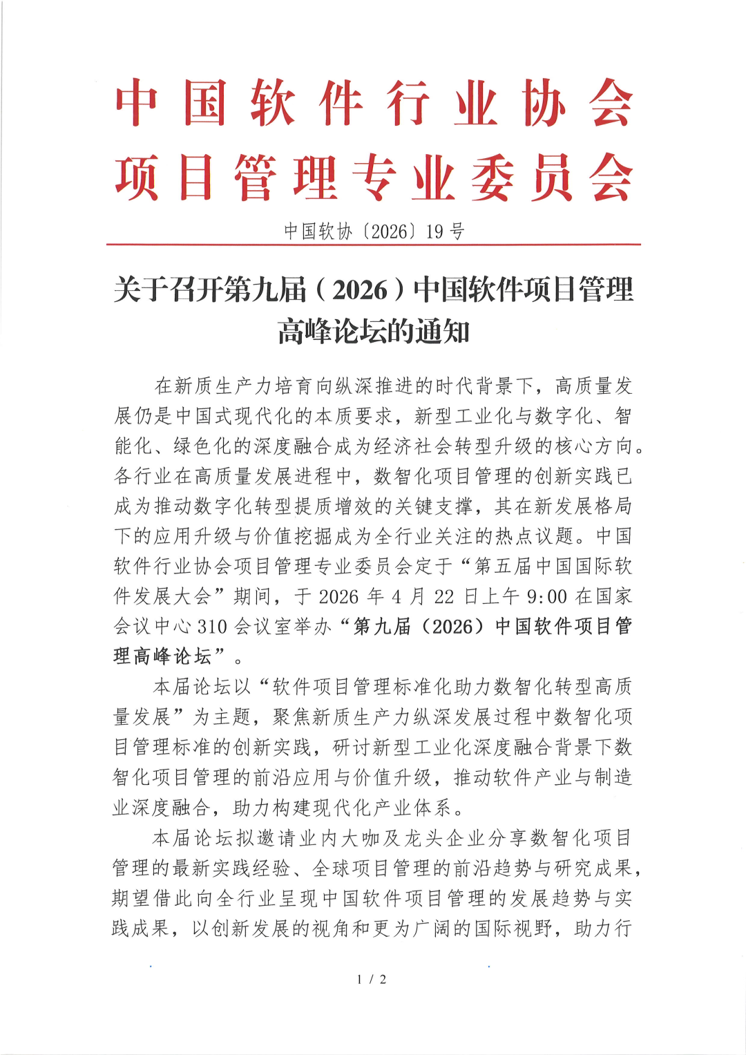?? 关于召开第九届(2026)中国软件项目管理高峰论坛的通知